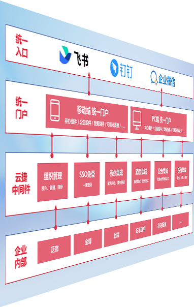 对协作平台提供支持服务,,支持企业应用与协作平台对接,,,包含组织同步、、消息集成、、、、待办集成等。。支持目前主流的协作平台:钉钉、、、企微和飞书。。。。